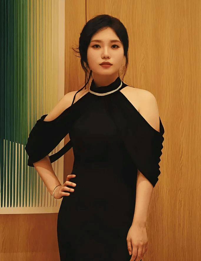 以前那个圆脸、松松垮垮穿着卫衣的东北姑娘,怎么突然变成了下颌线锋利、气质清冷的都市美人?礼服一穿,肩线、腰线、比例,那叫一个干净利落。